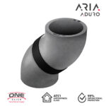 Isolierter Bogen 45° für Luftkanalrohr ARIA ADURO. Bögen bestehen aus leichtem und strapazierfähigem Material mit hohen Isoliereigenschaften – expandiertes Polystyrol (EPS) mit Graphitzusatz, resistent gegen Pilze, Schimmel und Bakterien.