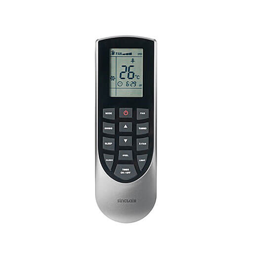 Das Sinclair VISION-Wandgerät besticht durch sein hochwertiges Kunststoffgehäuse in Hochglanz-Weiß. Das mittig angeordnete LED-Display, bestehend aus der Modussymbolik und einer Ziffernanzeige ist im ausgeschalteten Zustand nicht erkennbar und leuchtet im eingeschalteten Zustand durch das Gehäuse hindurch. Der Empfänger der Infrarot-Fernbedienung ist versteckt in der Front des Geräts.