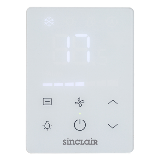 SINCLAIR kabelgebundene Touch-Fernbedienung mit LCD-Display zur Ansteuerung von Stand/Decken- Fancoils SF-XXXF3 mit DC-Motor.