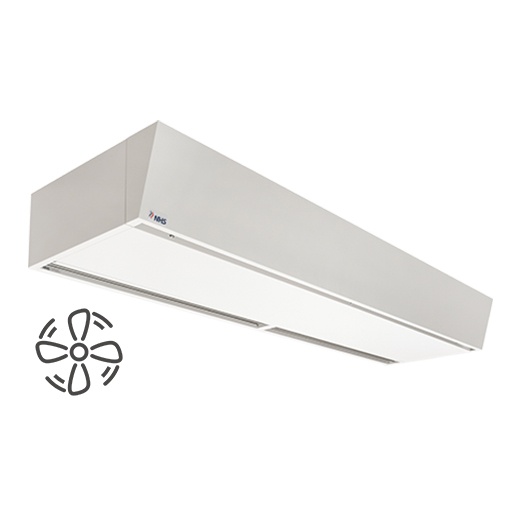 Luftschleieranlage in PREMIUM Gehäuseausführung für sichtbare, hängende Montage; Ausführung ohne Wärmetauscher.