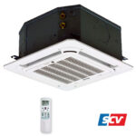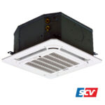 Die Wasserkassetten ist eine 4‑Leiter Deckenkassette, die entweder im Kühl- oder im Heizbetrieb genutzt werden kann. Die Kassetten können mit geringem Installationsaufwand in abgehängte Rasterdecken installiert werden. Aufgrund der sehr niedrigen Einbaumaße ist dies fast immer möglich. Die Luft wird auf der Unterseite über einen Filter (EU2) angesaugt und über die horizontalen Luftleitlamellen ausgeblasen. Die Luftleitlamellen können entweder in verschiedenen Positionen fixiert oder mit Hilfe der Autoswingfunktion automatisch bewegt werden. Durch diese Funktion wird entweder ein dreidimensionaler Luftstrom zur idealen Luftverteilung im Raum erzeugt oder die Luft direkt unter der Decke (Cuanda-Effekt) ausgeblasen. Eine
