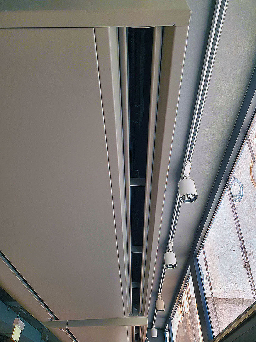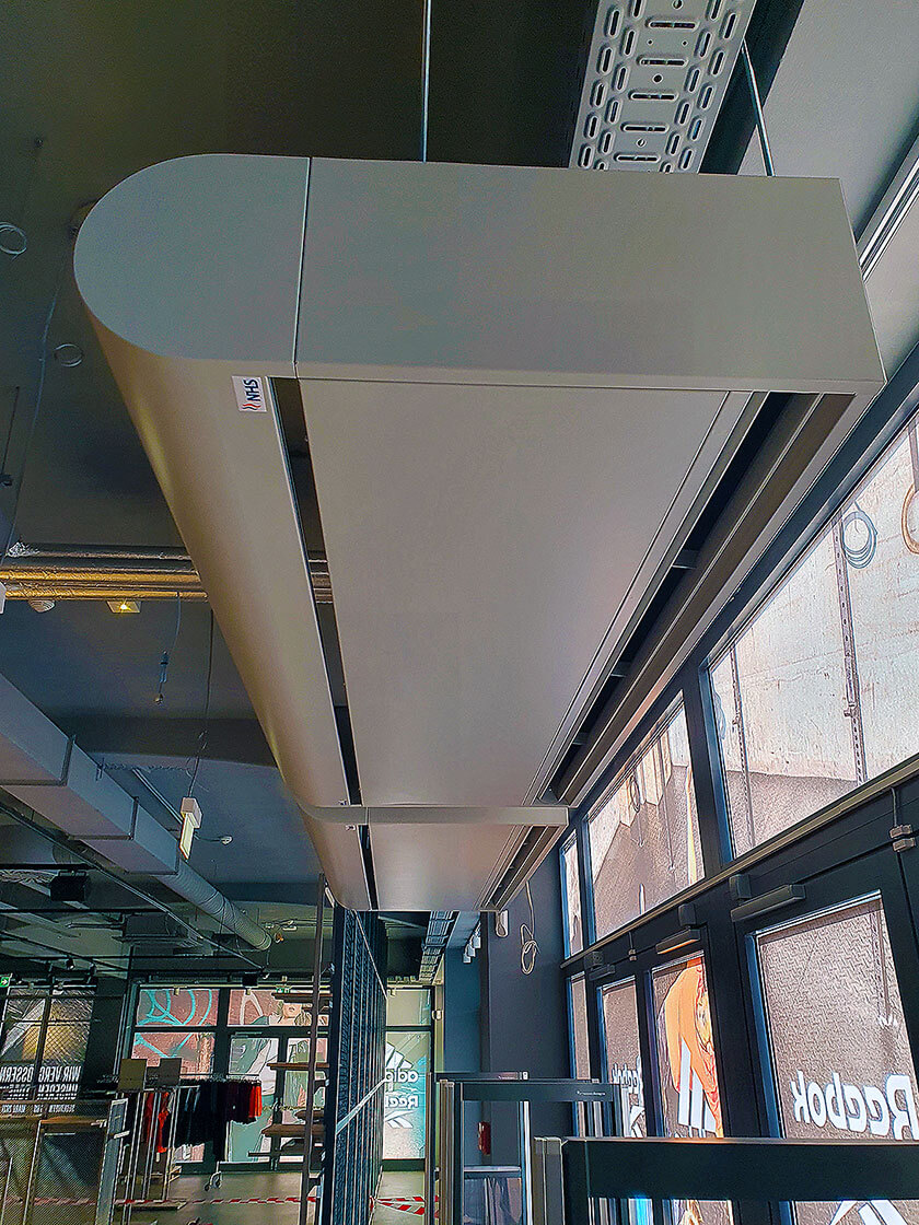 Um Kunden und Mitarbeitenden auch in der kalten Jahreszeit ein angenehmes Raumklima zu bieten, kommt am Eingang unseres Shops ein leistungsstarker Design-Luftschleier von Ballu zum Einsatz. Der erzeugte Luftstrom bildet eine unsichtbare Barriere, die den Einfall kalter Außenluft beim Betreten oder Verlassen des Geschäfts wirksam verhindert.